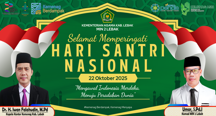 Kamad MIN 2 Lebak Umar, .Pd.I dan seluruh karyawan MIN 2 Lebak beserta jajaran Siswa dan Siswi membuka kegiatan Launching Hari Santri 2025.